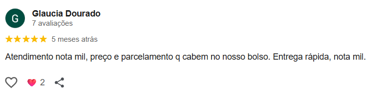 Atendimento nota mil, preço e parcelamento q cabem no nosso bolso. Entrega rápida, nota mil.